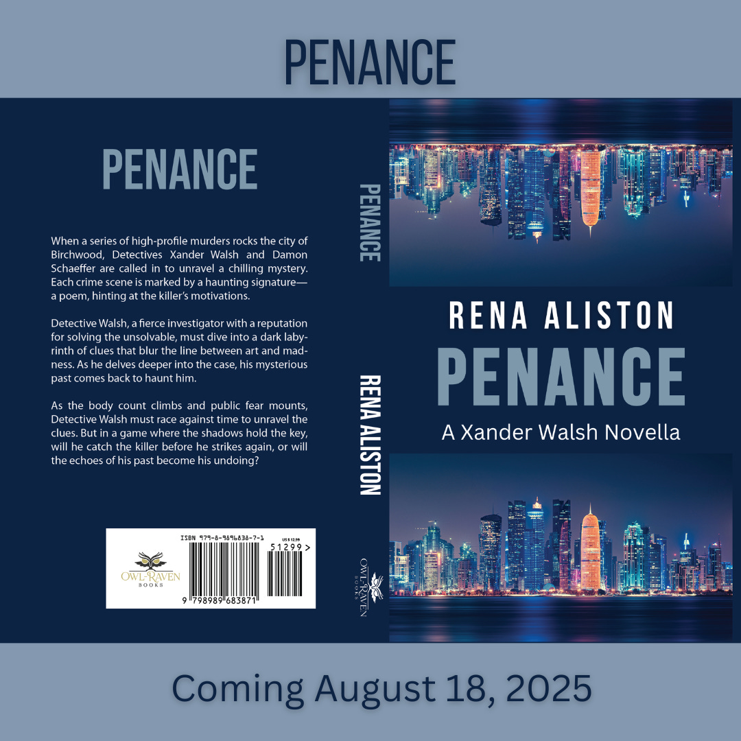 I’m excited to share the cover for my forthcoming crime/thriller novella, Penance. This is the first book in the Xander Walsh series and will be released on August 18, 2025. The book is currently available for pre-order.