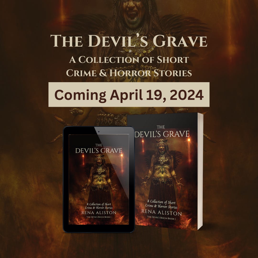 The Devil’s Grave: A Collection of Short Crime & Horror Stories will be released April 19, 2024. It’s the first book in The Devil’s Reign Series. I’m currently writing the second book and am 71% done. I’ve been dipping and diving in and out of book three at well and it’s currently 10% done.